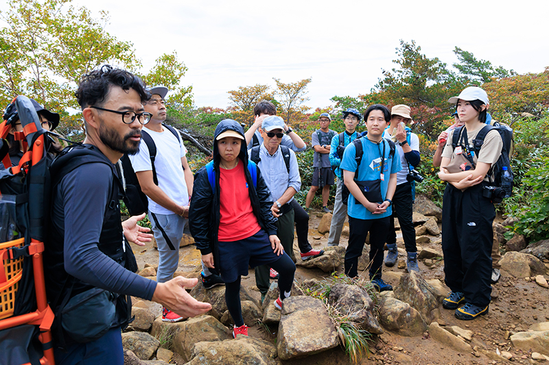 安達太良山の自然や登山のコツを説明する一瀬さん