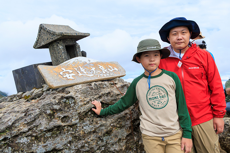 親子で参加した小嶋一輝さんと息子の大輝さん。頂上でにっこり